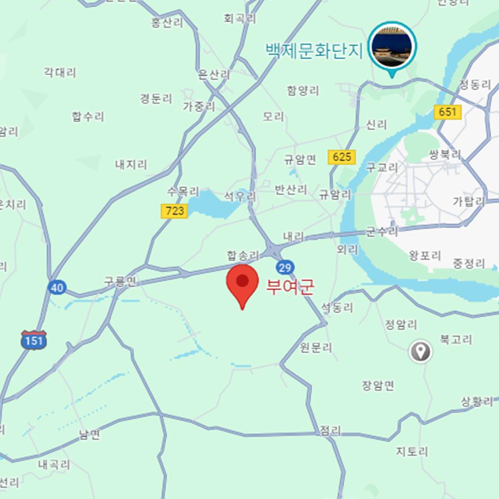 - 구룡면, 규암면, 남면, 내산면, 부여읍, 석성면, 세도면, 양화면, 옥산면, 외산면, 은산면, 임천면, 장암면, 조촌면, 충화면, 홍산면 : 화요일